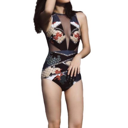 Printed Bikini Bodysuit – One‑Piece Swimsuit, Colorful Pattern, Quick-Dry Polyester