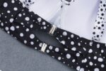 - Retro wave-dot printed pattern with scalloped edge or ruffle accents for a feminine retro look