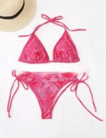 The set includes a structured bikini top with adjustable straps for a secure fit, and matching low-rise bottoms that hug your curves in all the right places. Whether you’re lounging poolside or dancing at a beach festival, this statement swimsuit adds playful attitude to your swimwear collection.